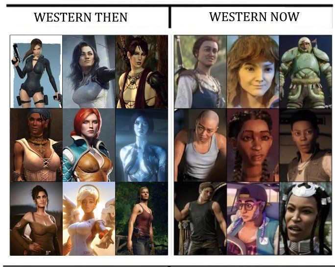 近日歐美游戲的女角色形象一直都不是很好,許多游戲都受到DEI荼毒,不僅長(zhǎng)得丑,而且還有些非常的抽象,這種現(xiàn)象在玩家圈引起了不少的爭(zhēng)議。不過在近日一個(gè)國外游戲博主Pirat_Nation分享截圖,他整理出將這些年各種東西方游戲的女性角色,并且對(duì)其進(jìn)行了對(duì)比,看的出來,歐美審美下降了,但是東方游戲?qū)徝肋€是一直很在線的。