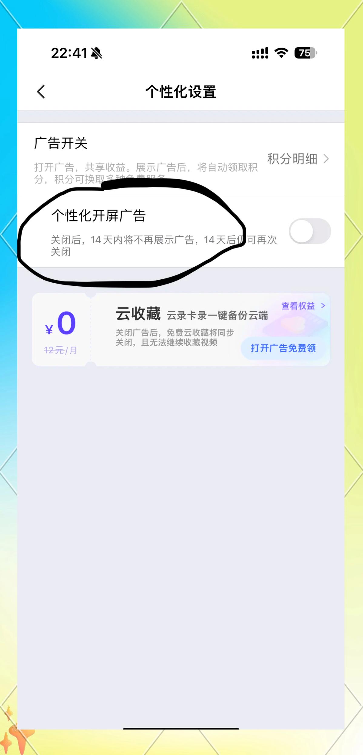 關(guān)閉廣告后,系統(tǒng)會(huì)提示你14天內(nèi)不會(huì)再展示廣告。14天后你可以再次關(guān)閉,但記住哦,關(guān)閉廣告后,一些免費(fèi)的功能也會(huì)受到影響,比如云收藏。