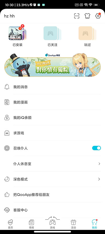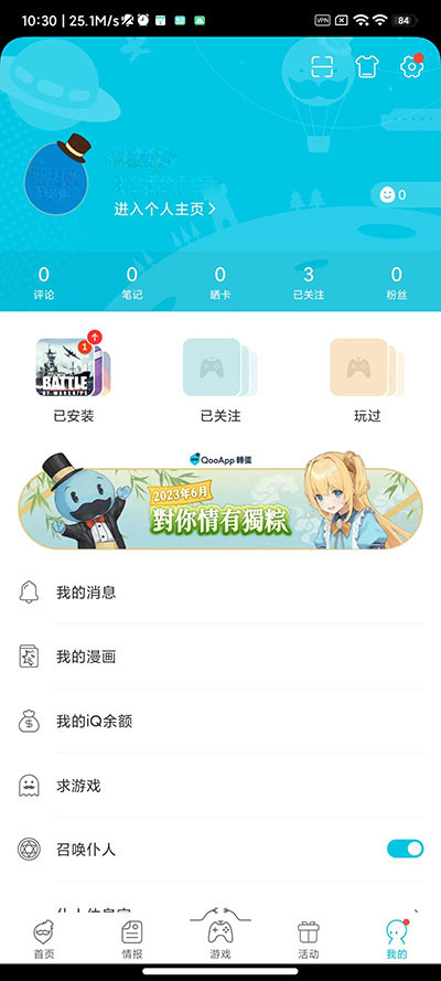 2、進(jìn)入QooApp主界面,點(diǎn)擊“我的”;