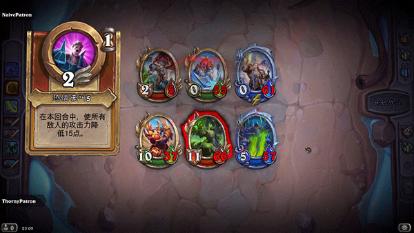 1、游戲中包含角色卡、武器卡及法術(shù)卡等類型,需組合強(qiáng)力牌組制定策略擊敗對(duì)手英雄。