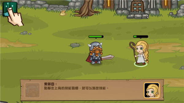 8、點(diǎn)擊左上角技能即可恢復(fù)角色的血量;