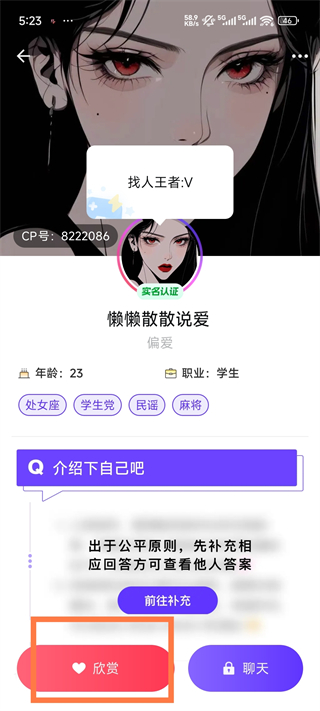 5、找到之后點(diǎn)擊欣賞【雙方互相欣賞時免費(fèi)聊天】