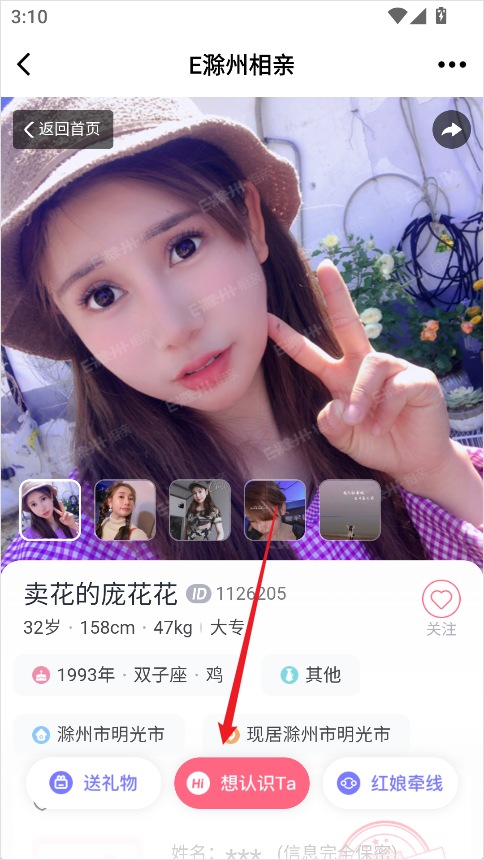 5、最后點擊「想認識TA」按鈕,即可發(fā)起聯(lián)系,邁出脫單第一步!